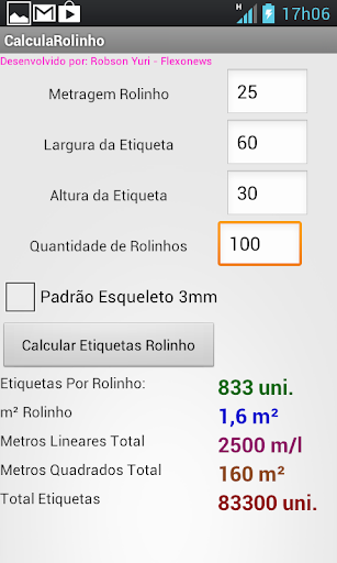 This application calculates the amount of adhesive labels, based on the film roll. The program is very simple, you indicate the length in meters of each roll, the label width and height in millimeters and the amount of rolls you wish to purchase, manufacture or possess. With this program you to convert labels per roll, square meters of material per roll, total linear feet, total square meters and total quantity of labels. This program is suitable for industries labels, tags and stickers.