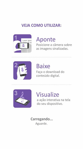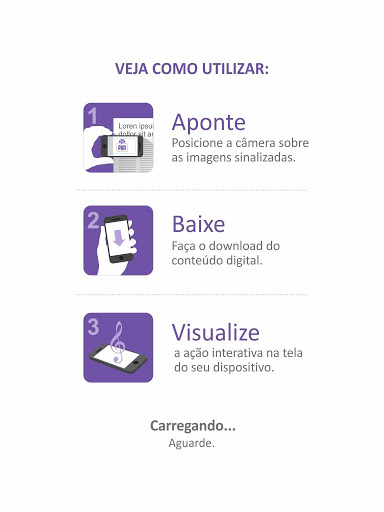 Baixe o aplicativo e visualize o conteúdo audiovisual disponível para as imagens pré-programadas sinalizadas.