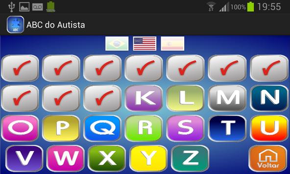 O ABC do Autista é um alfabeto que ao clicar emite um som com o nome da letra e marca com um check list.