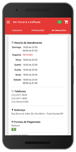 - Receber promoções exclusivas da MK Pizzaria e Esfiharia