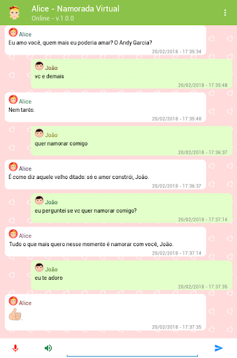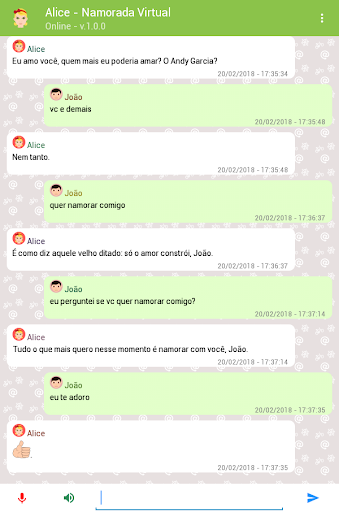 Algumas sugestões frases que você pode falar para a Alice - Namorada Virtual:
