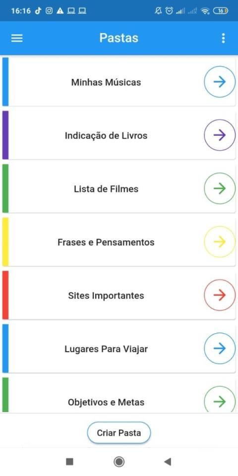 Definitivamente o nosso aplicativo vai lhe proporcionar a sensação de alívio imediato ao ver suas notinhas todas organizadas e separadas através de pastas.