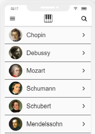 Classical Piano is one of the most comprehensive apps specializing in piano. We have hundreds of Chopin, Debussy, Schumann, Schubert and Mozart songs. Free songs!