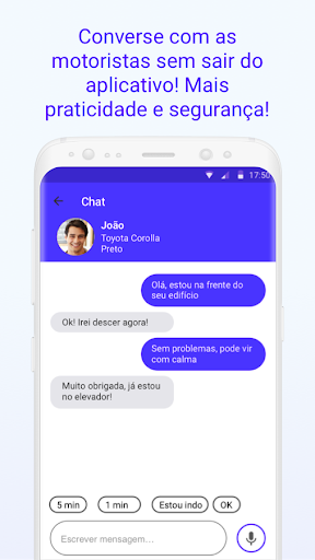 - O(a) motorista selecionado irá lhe buscar. Você poderá conversar diretamente pelo app por meio de nosso mensageiro;