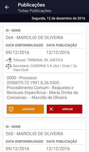 • Agendamento rápido com a possibilidade de anexar a publicação. – Recebeu publicações marcando audiência ou abrindo prazos? Faça o agendamento e receba notificações de seus compromissos.
