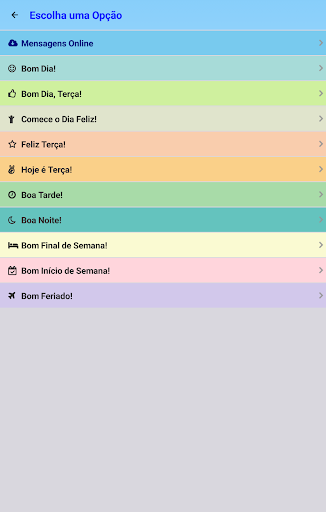 • MENSAGENS ONLINE: nova opção da listagem de textos com atualização constante de frases, mensagens e pensamentos para melhorar os ânimos, inspirar o seu dia e compartilhar com os amigos.