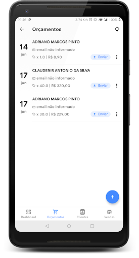 - Cadastro de orçamentos (Offline).