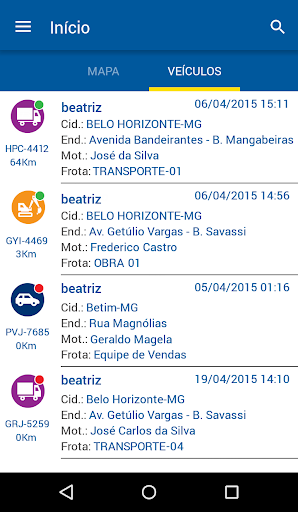 * Posicionamento - Localização do(s) veículos(s) em tempo real;