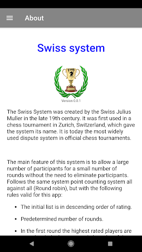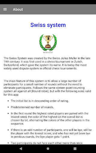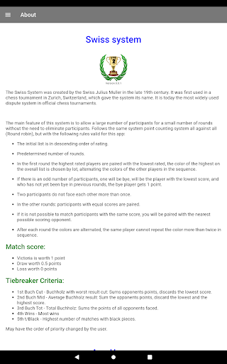 Chess Swiss competition system, manages the tournament simply and easily, without any complications, can be used for chess tournaments, checkers and other sports.