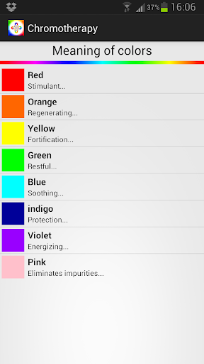 It is based on the therapeutic properties of each of the seven colors of the rainbow.