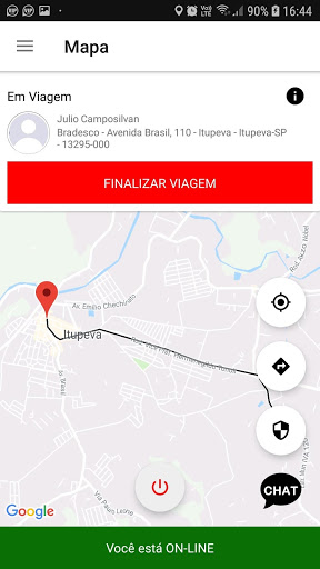 Nosso aplicativo permite que você solicite uma viajem e acompanhe o deslocamento do motorista pelo mapa, sendo avisado quando ele estiver na sua porta.