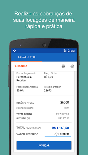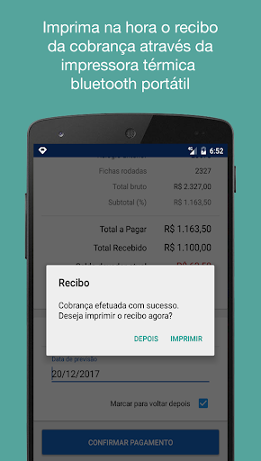 - Imprimir na hora o recibo da cobrança, por meio de uma impressora bluetooth térmica portátil;