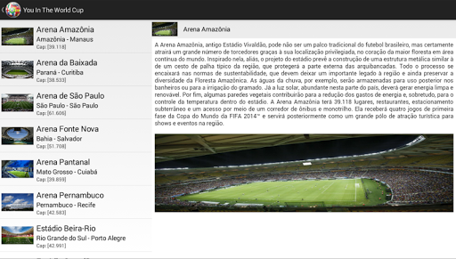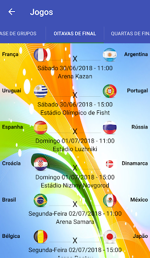 You in the Cup brings the news of the World Cup that is being held in Russia in the year 2018, as information on the selections, players, stadiums, games, containing all phases of groups, octaves, quarters, etc. The classification , and you can select a Heart Selection, you will receive notifications on the day of the game, so you do not miss any bids. And we also bring more news, real-time events about games, goals, cards, penalties, selections that have passed phase, etc. Thank you for downloading the app. :)
