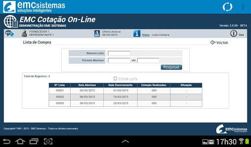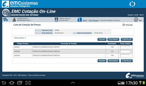 هذا التطبيق هو جزء من حل يتكون من إدارة أعمال EMC التي يمكن شراؤها بواسطة الموقع http://www.emcsistemas.com.br