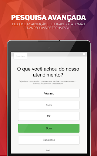 O administrador tem a opção de moldar as perguntas de acordo com sua necessidade, desde um simples questionário com respostas fechadas “sim” e “não”, até perguntas abertas e mais elaboradas, em que o usuário é indagado a escrever sua opinião sobre o assunto.