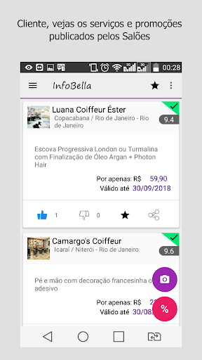 इन्फोबेला ब्यूटी सैलून को एक पूर्ण प्रोफाइल बनाने की अनुमति देता है ताकि आपके काम को फ़ोटो के साथ, सेवाओं के साथ, अपने काम को प्रकट करने में सक्षम हो सकें नक्शे के उपयोग के साथ पता और स्थान के अलावा, विस्तृत सेवा कार्यक्रम ले जाते हैं।