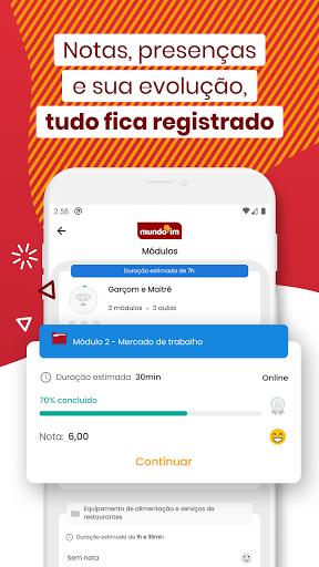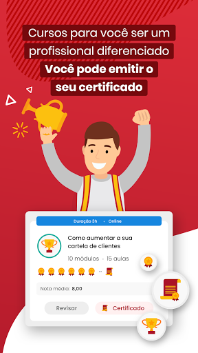 Área com Dashboard para acompanhamento de notas e módulos e listagem de cursos. Possibilidade de visualização de vídeos curtos e emissão de certificados de conclusão.