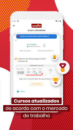 Listagem e acompanhamento de progresso dos cursos e possibilidade de emissão de certificados.