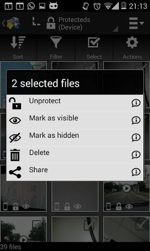 - Filter files by situations: protected, unprotected, hidden, visible.
