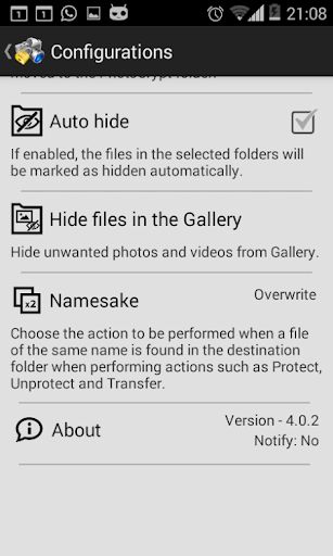 - Automatic services of protect and hide files*.