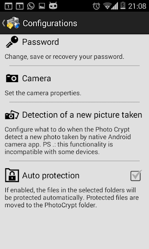 - Detects pictures taken by the native camera and shows a decision-making screen.