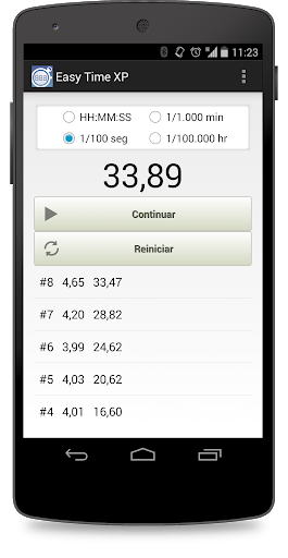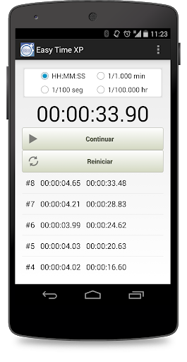 - Automatic conversion of recorded time according to the selected scale, even after the end of timing