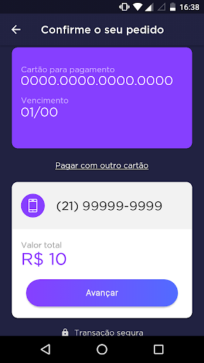 Você vai precisar apenas de um cartão de crédito MasterCard, Visa, Diners ou Elo para pagar pelos créditos solicitados. A recarga é disponibilizada imediatamente.