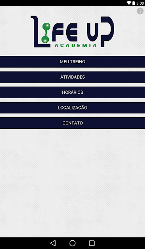 Com os menus Meu Treino, Atividades, Horários, Localização e Contato.