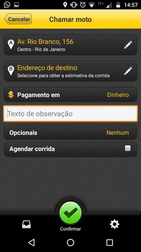 Learn the value of the race before ordering a mototaxi.