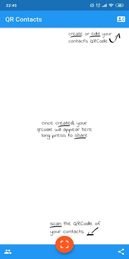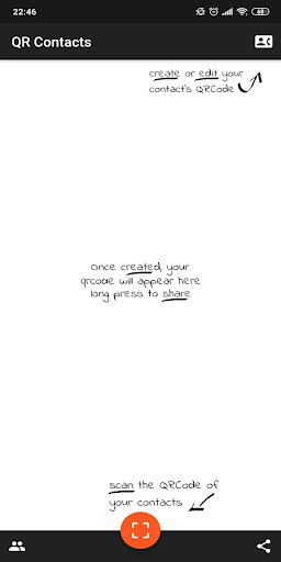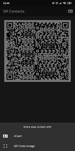Create a QR Code with your contact data that can be read by other QR Code readers and import contacts directly from the QR Code to your contacts.