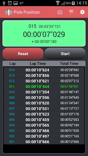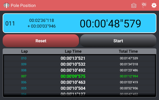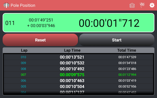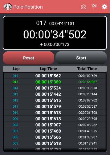 The Pole Position App is a chronometer that offers the manually action to get lap time and the geospacial resource action to get lap time automatically.