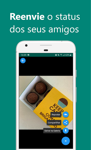 De status delen Uw vrienden die rechtstreeks via onze app zijn geplaatst, met deze functie kunt u een afbeelding of video ophalen die is gedownload van het app en deel in anderen. Sociale netwerken!