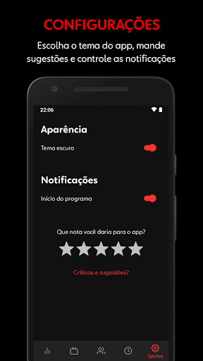 Escolha o tema do app e quais noitificações gostaria de receber.