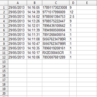 * You can import a file with barcodes and product descriptions (Importar produtos button) that will be read, the file should be a txt being the first field the barcode and the second the name of the product following example: