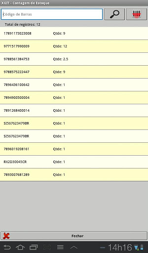 * Possibility to validate read bar codes, scoring in field settings "Exibir alerta quando fizer a leitura de um produto não cadastrado", upon reading a barcode the application will warn the user if the product in question does not is registered (imported), the reading will be recorded in any way, only the warning will be issued.