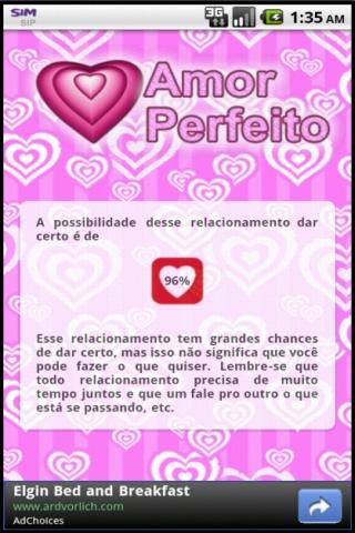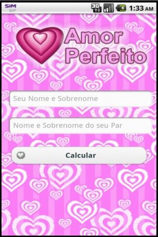 Descubra se encontrou o Amor Perfeito! Coloque seu nome e sobrenome, o nome e sobrenome do seu par e veja qual a possibilidade do relacionamento dar certo.