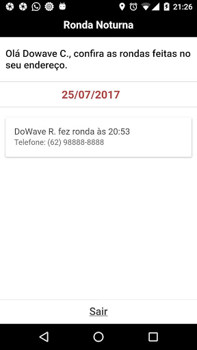 Aplicativo criado para facilitar a vida dos cliente da Ronda Noturna. Com rápido e fácil acesso, os clientes consultam os horários das rondas executadas nos seus enderenço. Além de visualizarem o nome do rondante e o seu telefone, facilitando um contato de emergência.