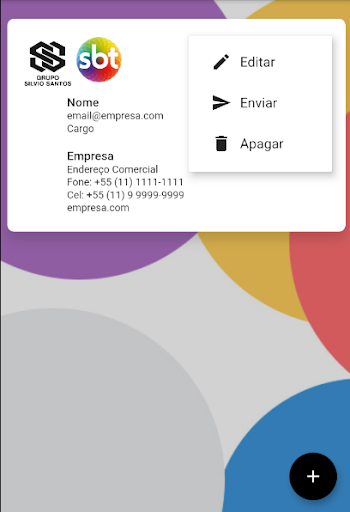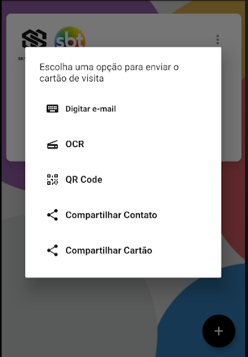 Aplicativo para Colaboradores do SBT compartilharem contato e imagem do cartão de visitas via aplicativos de mensagem, QR code e OCR.