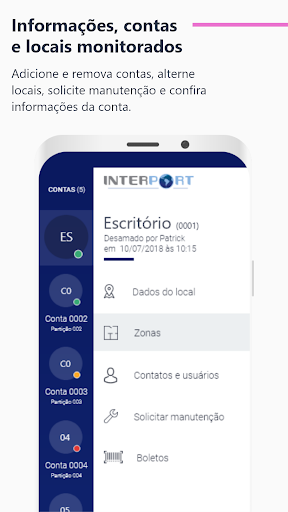 Interport - Alarm is een mobiele applicatie waar de bewaakte klant alle activiteiten van uw veiligheidssysteem rechtstreeks via mobiel of tablet kan volgen.Via de applicatie kunt u de status van het alarmpaneel kennen, regelen en ontwapenen, live camera's bekijken, open evenementen en servicevorders controleren en telefoongesprekken voeren naar geregistreerde contacten op uw profiel.