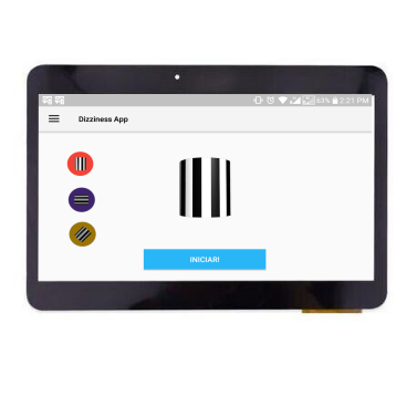 Following this idea and taking as base students rehabilitation programs for children with bad school performance and with report of dizziness, that was created a application called Dizziness App, trying to simplify and automatize the dizziness therapy process.