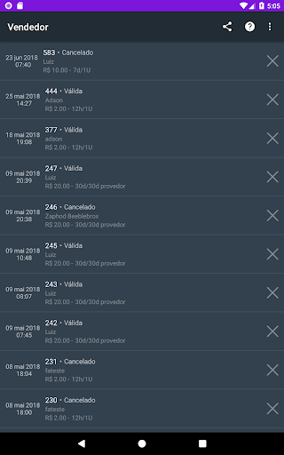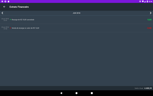 Além da visualização de todas as recargas feitas, cancelamento de recargas recém realizadas, visualização do extrato por mês e suporte técnico especializado.