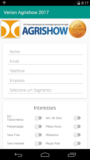Aplicativo destinado a uso interno da Verion para cadastro e captação de leads que será utilizado na feira Agrishow 2017