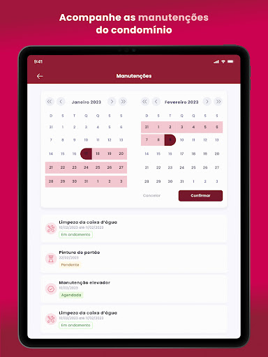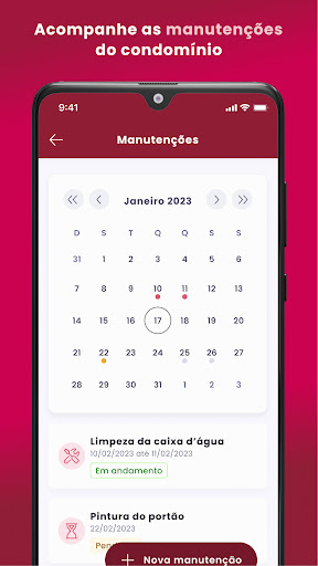 • MANUTENÇÕES: Fique por dentro de quando irá acontecer aquela limpeza da Caixa D'Água e se programe para as manutenções do condomínio. Síndicos se organizam com as demandas do condomínio. Chega de transtornos e falhas de comunicação em manutenções.