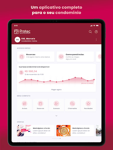 O aplicativo da Protec Gestão e Serviços pode ser utilizado por Síndicos, Porteiros, Moradores e possui diversos recursos, dentre os principais: