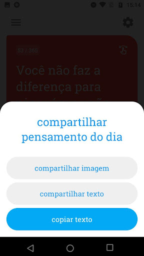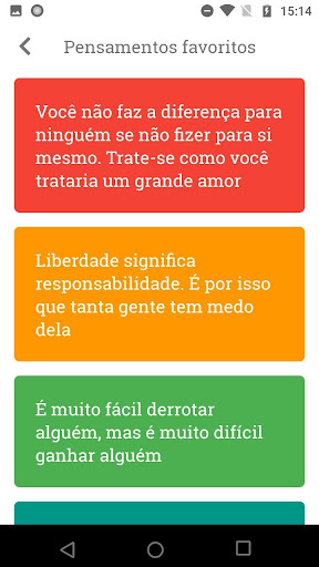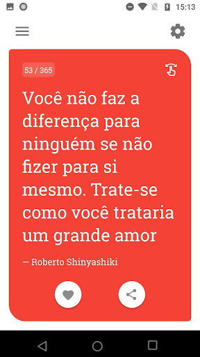 "오늘의 생각";그것은 당신이 행복과 성공을 달성하여 자기 평가와 자신감을 향상시키는 데 도움이되는 매일 동기 부여 문구와 지혜의 순간을 갖춘 완전 포르투갈어 앱입니다.더 많은 동기 부여, 지혜와 영감을 찾고 있다면, 오늘의 문구는 매일 명상과 일상적인 성찰을 돕는 데 완벽합니다. 행복과 삶의 질을 향상시킵니다.응용 프로그램 "오늘의 생각";그것은 당신의 불안을 완화하고 당신의 하루에 더 많은 평온을 가져다 줄 수있는 지혜와 매일 동기 부여 문구를 제공합니다.