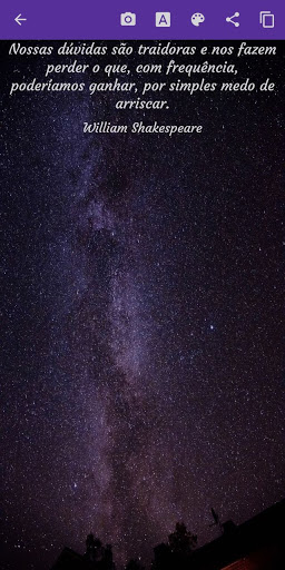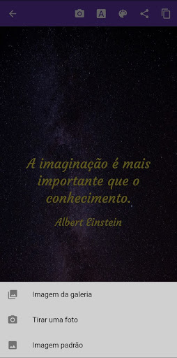 আপনি বাক্যাংশগুলি ভাগ করতে পারেন এবং ফেসবুক, Instagram, হোয়াটসঅ্যাপ এবং আপনি চান অন্য কোন অ্যাপ্লিকেশন এবং সামাজিক নেটওয়ার্কের ছবিগুলি আপনাকে ফন্টের আকার এবং রঙ পরিবর্তন করতে দেয়, ক্যামেরা বা গ্যালারি থেকে চিত্র যুক্ত করতে এবং পাঠ্যটিকে অবস্থান করতে দেয় আপনি চান উপায়।