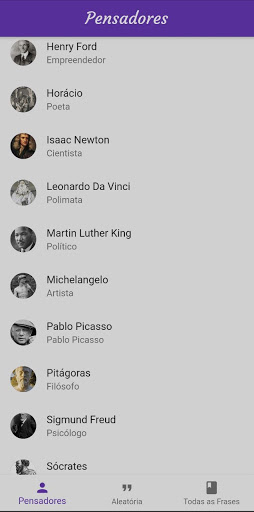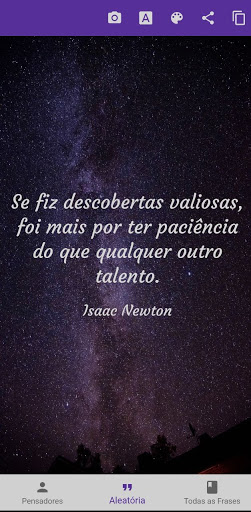অ্যাপ্লিকেশনটি বড় চিন্তাবহের বাক্যাংশগুলি আপনার প্রতিদিনের জন্য প্রতিফলন থাকবে এবং শত শত স্মার্ট বাক্যাংশের সাথে একটি তালিকা থাকবে যা হোয়াটসঅ্যাপ স্ট্যাটাস, ফটোগুলি, বাক্যাংশগুলির সাথে চিত্রগুলি তৈরি করতে পারে ইত্যাদি।