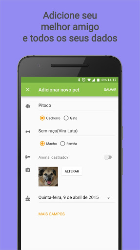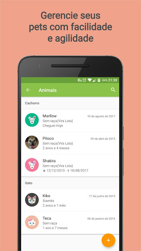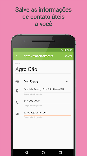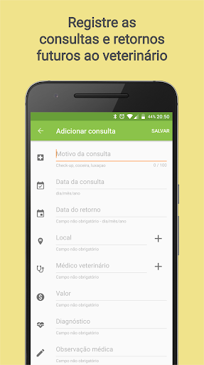 - Manter informações de contato dos seus estabelecimentos e médicos veterinários favoritos (nome, telefone, endereço, ...).