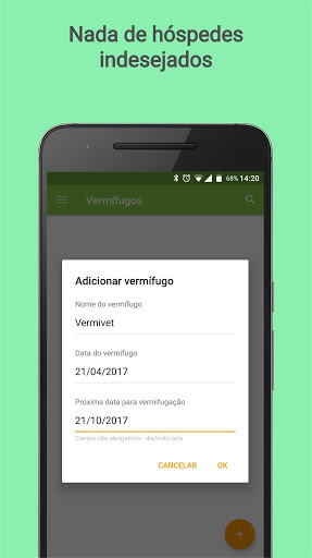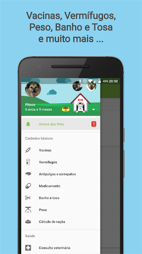 - Controlar vacinas e vermífugos/parasiticida (registrar e programar próximas doses).