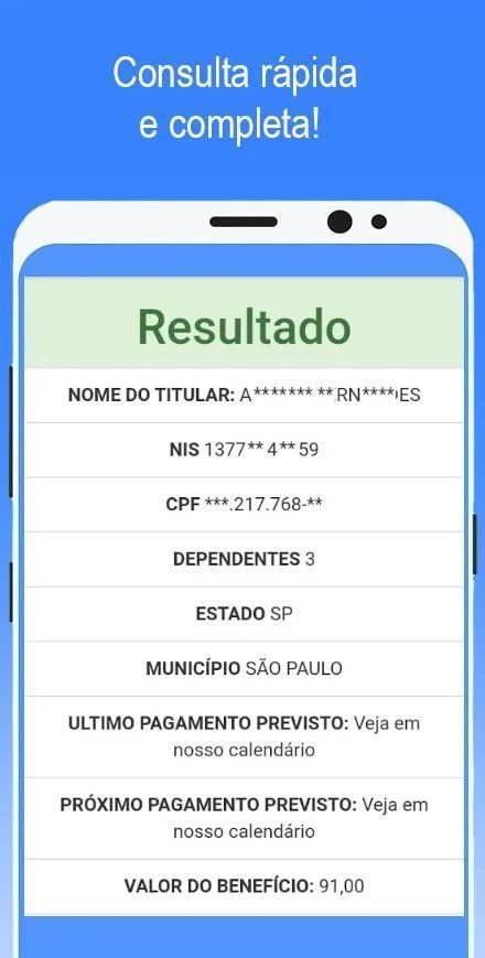 - Verificar os valores, data do último pagamento, data prevista do próximo pagamento e várias outras informações do beneficiário!
